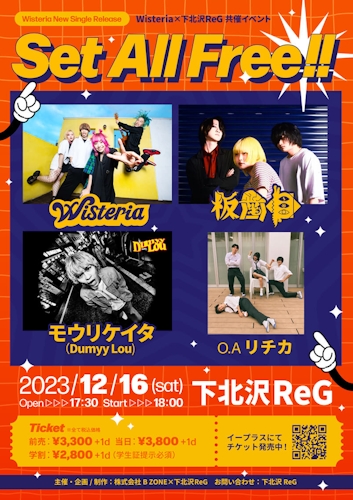 Wisteria New Single Release 下北沢ReG共催イベント『Set All Free!!』開催決定!