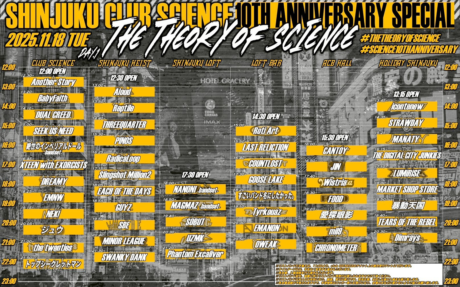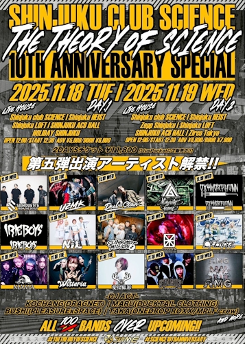 ”The Theory of SCIENCE"~Shinjuku club SCIENCE 10th Anniversary ~出演決定