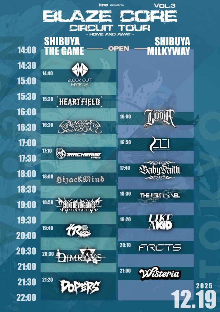 DOPERS Pre. BLAZE CORE VOL.3 -Home and Away-(東名サーキットツアー 東京編)出演決定